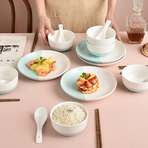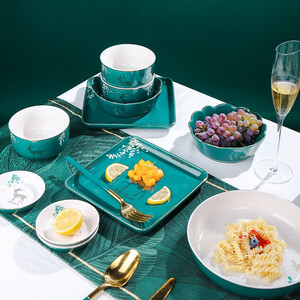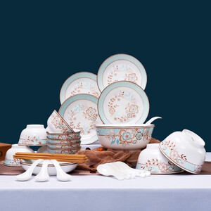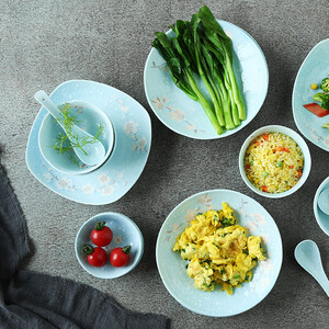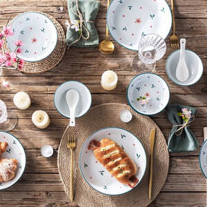 餐具表面印有素雅花纹,外观清新,使用更舒心。餐具为瓷质材料,手感冰凉舒适,清洗更方便。采用高温烧制,更加安全无害。 上榜理由: