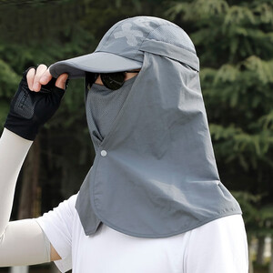 专为户外设计防晒帽,人性化的半帽檐设计,抬头转头自如。配以可拆卸面罩设计,可作防晒使用,全部放下遮阳面纱,可防晒、防虫。