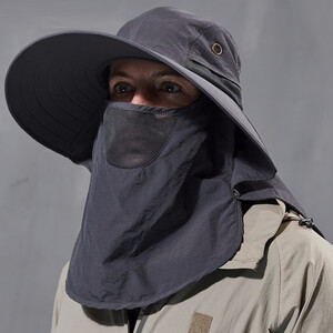 夏天户外登山钓鱼防晒帽,15CM加大帽檐,防晒遮阳效果更出色。配以可拆卸面罩披肩设计,让你360防晒。