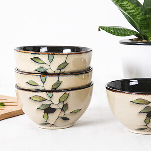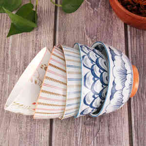 5只装日式陶瓷碗,每一只风格图案都不同。高温烧制而成,轻盈透亮,颜料溶于釉下,安全健康。手工上色,清新素雅。