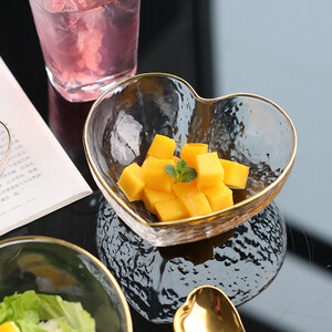 这款玻璃碗采用了透明材质制作,搭配日式的金边点缀,带有小资的高级感。配以甜美可爱的心形轮廓,可用于装水果等食材。 上榜理由:
