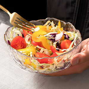 玻璃碗具外壁的锤纹设计,手感凹凸不仅能提升防滑性便于你拿放,而且富有质感更添时尚美感。