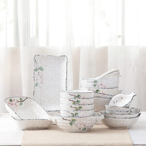 樱之歌餐具套装,有着简约气息。纯手工制作的流釉设计,有种自然素雅在其中。手绘的樱花,每朵花的形态各异,流露出美好与韵味。 推荐商品