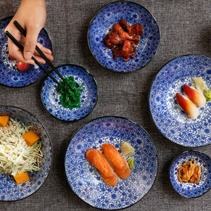 采用日式线唐草纹为装饰,由水墨蓝色的线条勾勒而成,可演绎出烟雨蒙蒙的意境,寓意吉祥和美。餐具做工细致,边角光滑。 上榜理由: