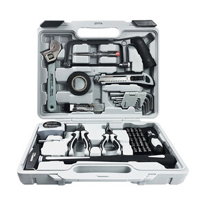配置有螺丝刀、扳手、羊角锤等多件基础工具,基本的家具组装、电器维修均可搞定,非常适合日常家用。