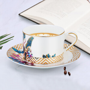 此款咖啡杯环保无铅,保障饮用安全,且釉色均匀,使得图案更加精美,彰显华贵优雅格调。