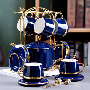 蓝色的杯身,搭配金色的手柄和细节,精致优雅,并透露着复古韵味,适合不同居家风格使用。