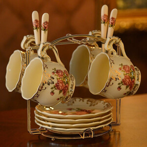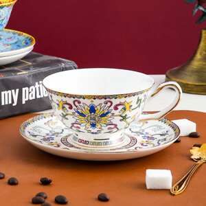 珐琅彩与描金工艺结合,福禄缠枝图案美观显立体,呈现中式宫廷风格;选用骨瓷作为制作原料,质地坚硬不易碎,使用寿命更长。