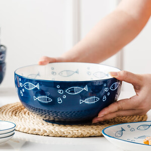 立体卡通游鱼釉下彩,日式和风韵味浓郁,高温烧制的瓷碗,光亮柔和。