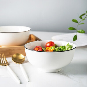 白色碗身搭配黑色碗边装饰,简约大方,选用优质原材料,使用更放心。