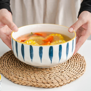 碗身螺纹纹理的设计,充满层次感,手绘釉下彩工艺,历久弥新。