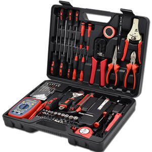 内含一字十字批、沾塑扳手、玻璃纤维柄羊角锤、微型螺丝批、尖嘴钳、钢卷尺、美工刀等工具,应有尽有,家电维修不在话下。