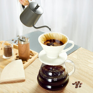 配有精细过滤网,可以准确控制水流,方便泡出纯净醇香的咖啡。V型壶嘴设计,可以顺畅倒水,方便控制水流。