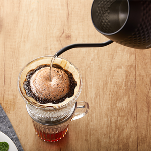 螺旋纹内壁设计,可以让水流顺着中心流入,让咖啡粉与水充分接触,方便萃取。鹅颈把手设计,美观易握。