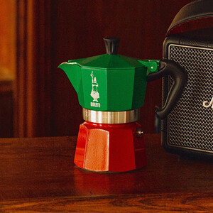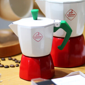 融合了意大利三色旗元素的意式咖啡壶,更具时尚韵味。选用食品级铝材,可制作玛奇朵、拿铁、摩卡等多种类型咖啡,保留咖啡原香。
