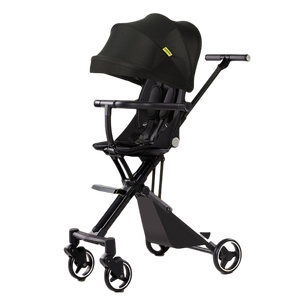 360°万向前轮,内置避震弹簧,转弯、掉头更轻松,同时可以减少不必要的震动。外观小巧轻便,一秒折叠,一人带娃也应对自如。
