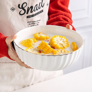 洁白的瓷面上,金边线条勾勒出丝丝曲线,散发着优雅的气息,是餐桌上一道靓丽的风景线。