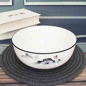 水墨画中式风格,加厚碗壁,釉中彩工艺,美观大气上档次,厚实光滑细腻,洁白无瑕。