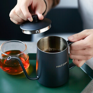 304不锈钢壶身,杯型优雅美观,以特氟龙涂层覆盖,带来有质感的丝线纹理。流线型出水口设计,可90度出水,出水稳定易控。