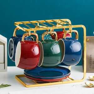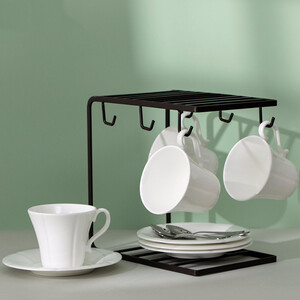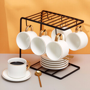 咖啡杯线条简洁流畅,质感光滑细腻,搭配流线型杯柄,更加精致。套装组合设计,杯碟、杯架以及勺子一应俱全,收纳更方便。