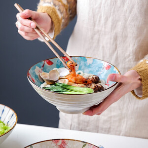 精选优质瓷土制作,纯手工绘制,造就品质好面碗。碗边勾线风化效果,精致古朴别具一格,瓷质厚实,稳固好拿不烫手。