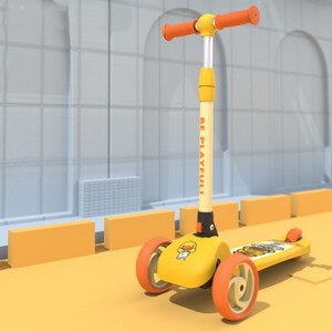 橙黄色的滑板车颜色,鲜艳活力,衬出孩子的童真可爱,后轮采用安全踩刹系统,随时踩停。
