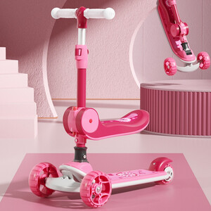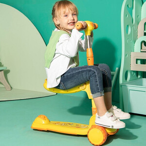 多样玩法的滑板车,可坐骑也可站着玩耍,稳固的三轮设计,滑行不易侧翻。