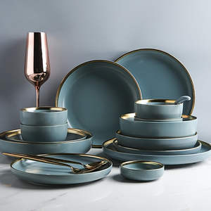 清新素雅的颜色,不夹杂任何的图案,视觉上给人一种简约的北欧格调。以金色的描边作为点缀,丰富了整个餐具的调性。 上榜理由: