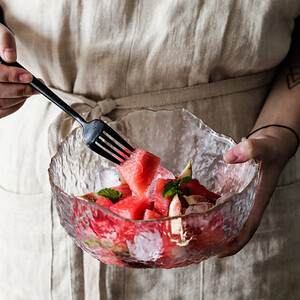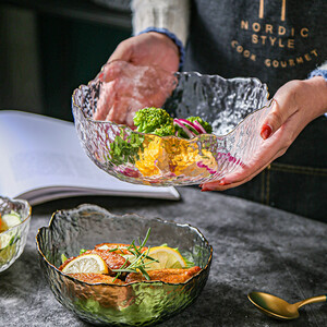 采用锤纹玻璃制造,透明有质感,便于拿放,在光照刺激下散发出耀眼光芒;用途广泛,可用来盛装沙拉、水果等,实用美观。 上榜理由: