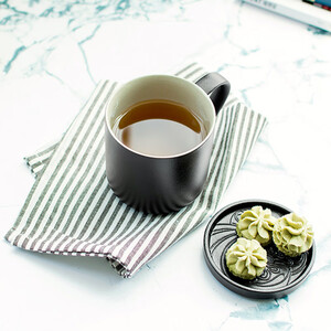 采用骨瓷烧制而成,其瓷质轻薄细腻,握感舒适,搭配敞口杯型设计,饮用方便,还利于清洗打理。