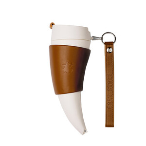 来自英格兰的涂鸦达人将创意涂鸦设计在山羊角咖啡杯上,充满时尚感。pu皮革的隔热杯套和时尚肩带搭配,生活更实用。 上榜理由: