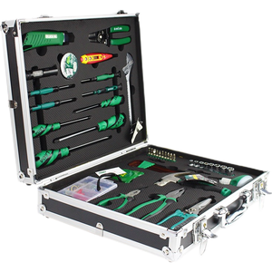 铝合金箱更耐用,组套配备齐全,应用范围广,钢丝钳尖嘴钳铬镍钢6英寸表面干油性,7寸7挡轻便剥线钳,经久耐用抗老化。 上榜理由: