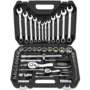 锻造72齿弯柄棘轮,耐用不伤手,作业修理更加轻松,82件丰富组合,适用机修、自行车、摩托车等多种维修。