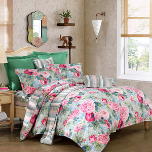 时尚床品采用全棉材质制作,舒适的面料吸湿透气性能强大,清爽不粘腻。环保印染工艺制作,绿色健康更温和。