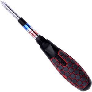 刀杆头部具有磁性插孔,能够任意搭配10种旋具头,可以适应多种功能场景。拥有较圆形断面手柄,扭力性能很好。