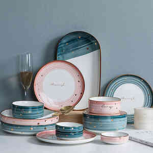 洛威手绘真金波点餐具,北欧轻奢风格,釉下彩工艺,新骨瓷材质,瓷质厚实,润泽通透,时尚外观,花面简洁。
