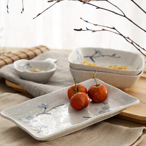 来自广东潮州的樱之歌餐具,釉下彩工艺,北欧简约分割,优质耐用材质,釉面光滑,柔和触感,使用方便,20头组合。