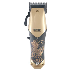 可调节全钢刀头设计,可根据需求自行调节,满足不同发型需求。金色机身设计,配以复古图案装饰,美观大气。