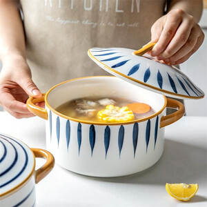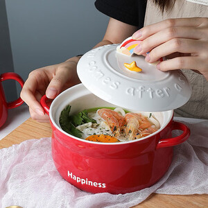 采用防烫双耳设计,盖子采用C型把手设计,提拿舒适稳当;底部未施釉,能够有效防滑,使用时更加稳固,不易打翻泡面碗。 上榜理由: