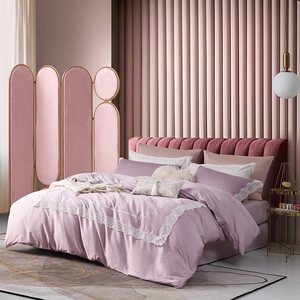 富有莹润肌理质感的提花融入床品之中,藕粉色的温柔色调更增添出丰富的视觉层次。AB面的设计,里面是纯棉面料,舒适柔软。 上榜理由:
