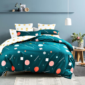 活力多彩的几何图案装饰墨绿色被面,明艳活泼,雅致大方,简约耐看。精选优质棉花制作,触感平滑,细腻亲肤,舒适透气。