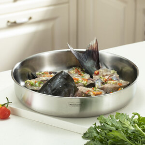 采用优质不锈钢制成,环保健康,提升了盘子的耐用性。圆盘设计,视感简约光滑不失洋气感。
