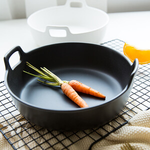 精选优质的陶瓷材质制成,触感厚实稳固,视感华丽轻奢有光泽感。双耳烤盘设计,便于携带不烫手。