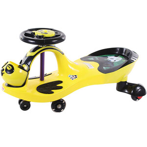 一款亮眼吸睛的黄色儿童扭扭车,可爱卡通方向盘,方便操作,自带音乐功能,让孩子滑行更有趣。