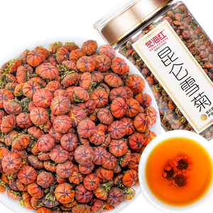 甄选大小均匀、花粒饱满的优质胎菊,口感更加清润。以85℃-100℃开水冲泡,汤色色泽金黄透彻,味道纯正浓烈,久泡也不会散开。 上榜理由: