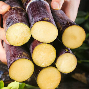 甘蔗节长粗大肥美多汁,果皮呈现紫黑色,果肉通透诱人,细嚼之后满口芳香。现砍现发保障品质,减少坏果放心选择。 上榜理由:
