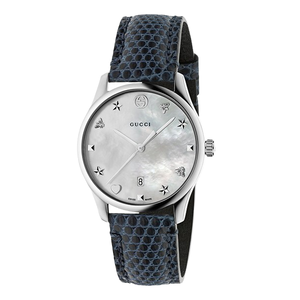 经典的圆形表盘,外圈搭载紧密镶嵌的水钻,闪亮耀眼,彰显华丽时尚。简单的条形刻度,贝母表盘,白色温润,衬托肤色。 上榜理由: