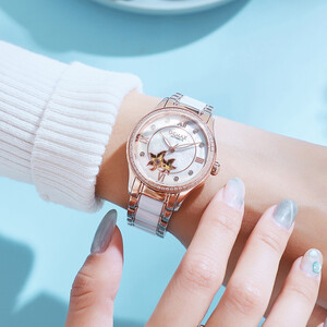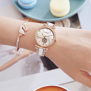 蓝宝石玻璃表镜,防刮耐磨,有着高透光的优点,观看时间更清晰。珍珠陶瓷表带设计,和金属搭配相得益彰,凸显女性干练气质。 上榜理由: